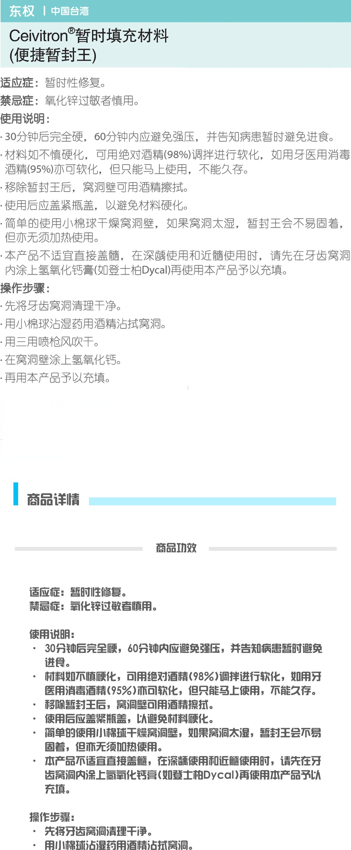 产品名称:Ceivitron便捷暂封王/暂时填充材料