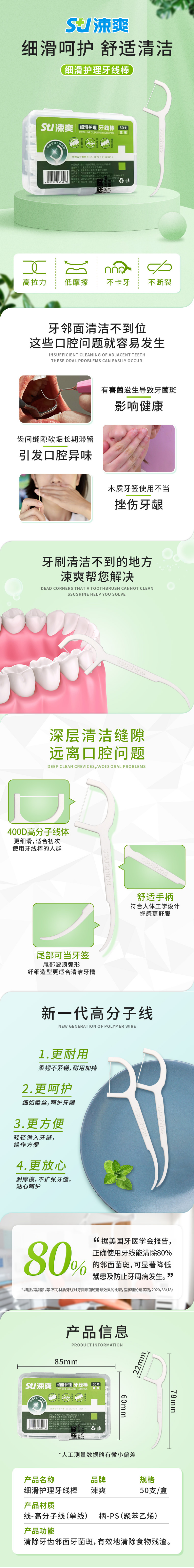 涑爽 细滑护理牙线棒/无创伤牙线棒 50支/盒