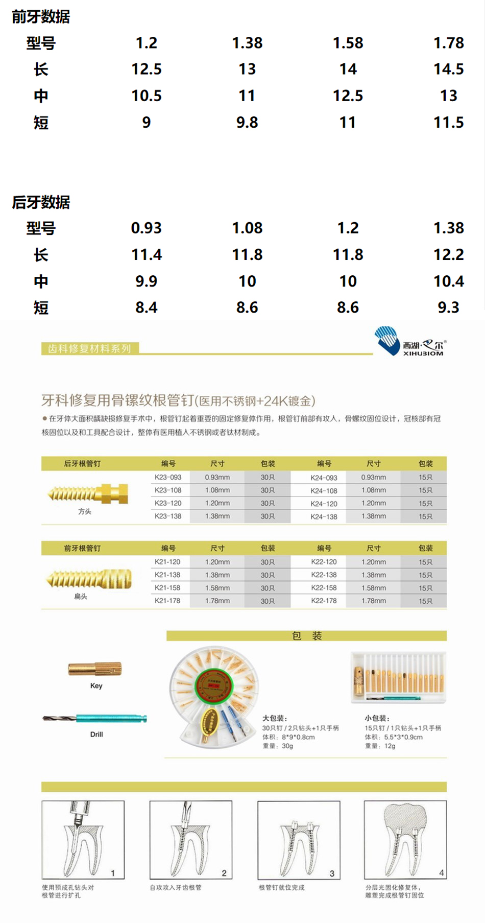 产品名称:方头型(后牙)根管桩 24K镀金后牙骨螺纹根管桩