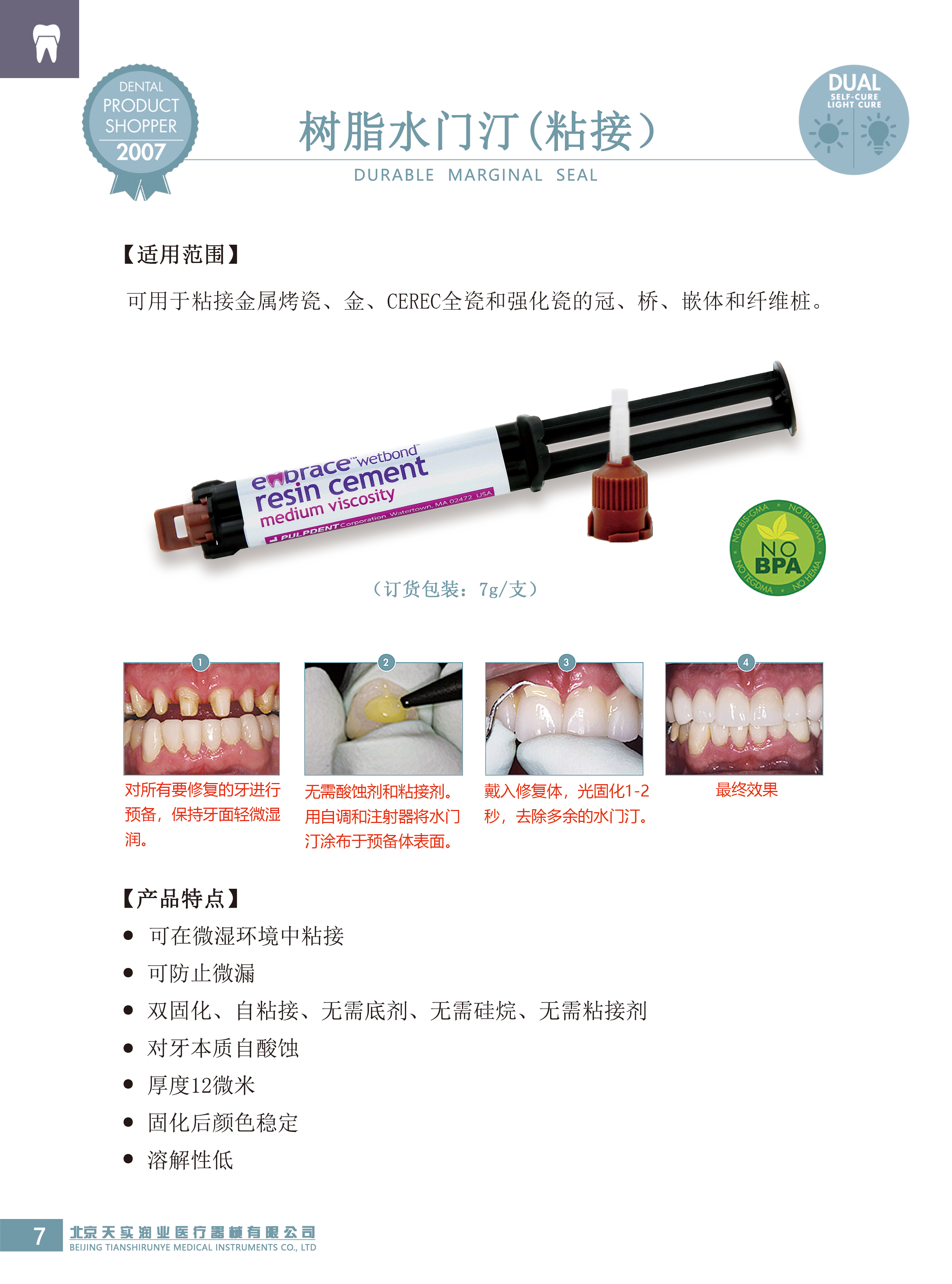 产品名称:树脂水门汀(通用)