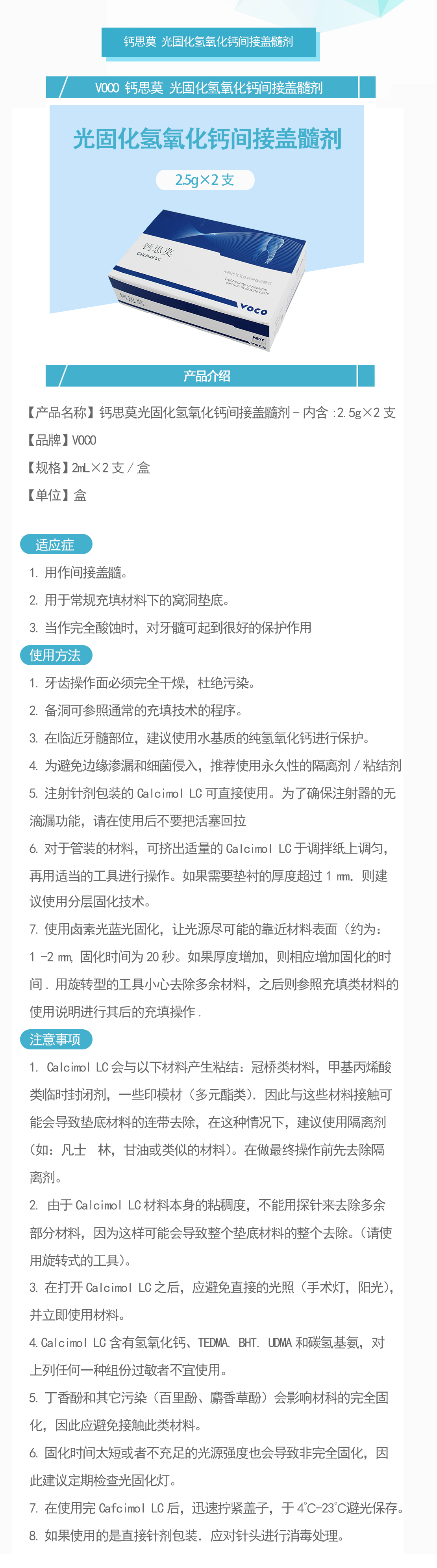 产品名称:钙思莫光固化氢氧化钙间接盖髓剂