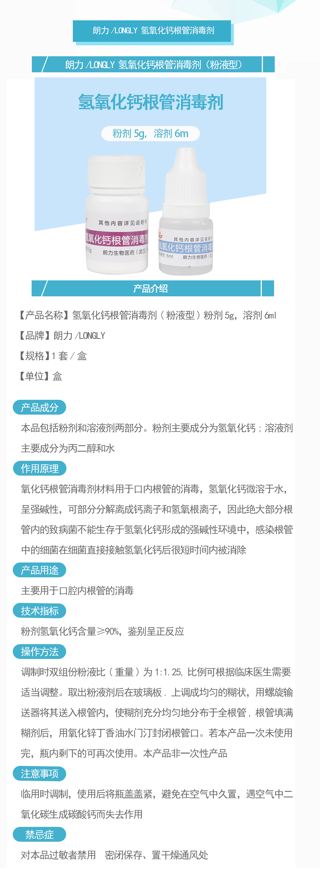 产品名称:氢氧化钙根管消毒剂(粉液型)