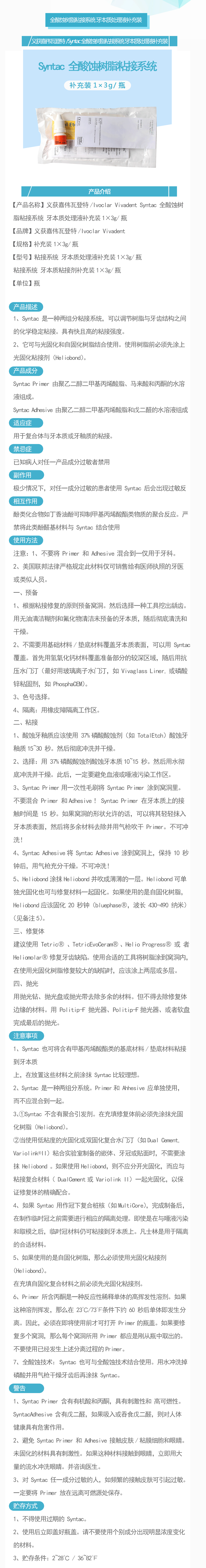 产品名称:Syntac 全酸蚀树脂粘接系统 牙本质处理液补充装