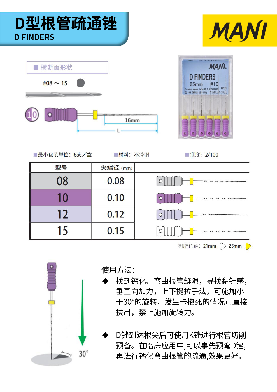 马尼/MANI D型根管疏通锉 21mm 25mm 6支/盒