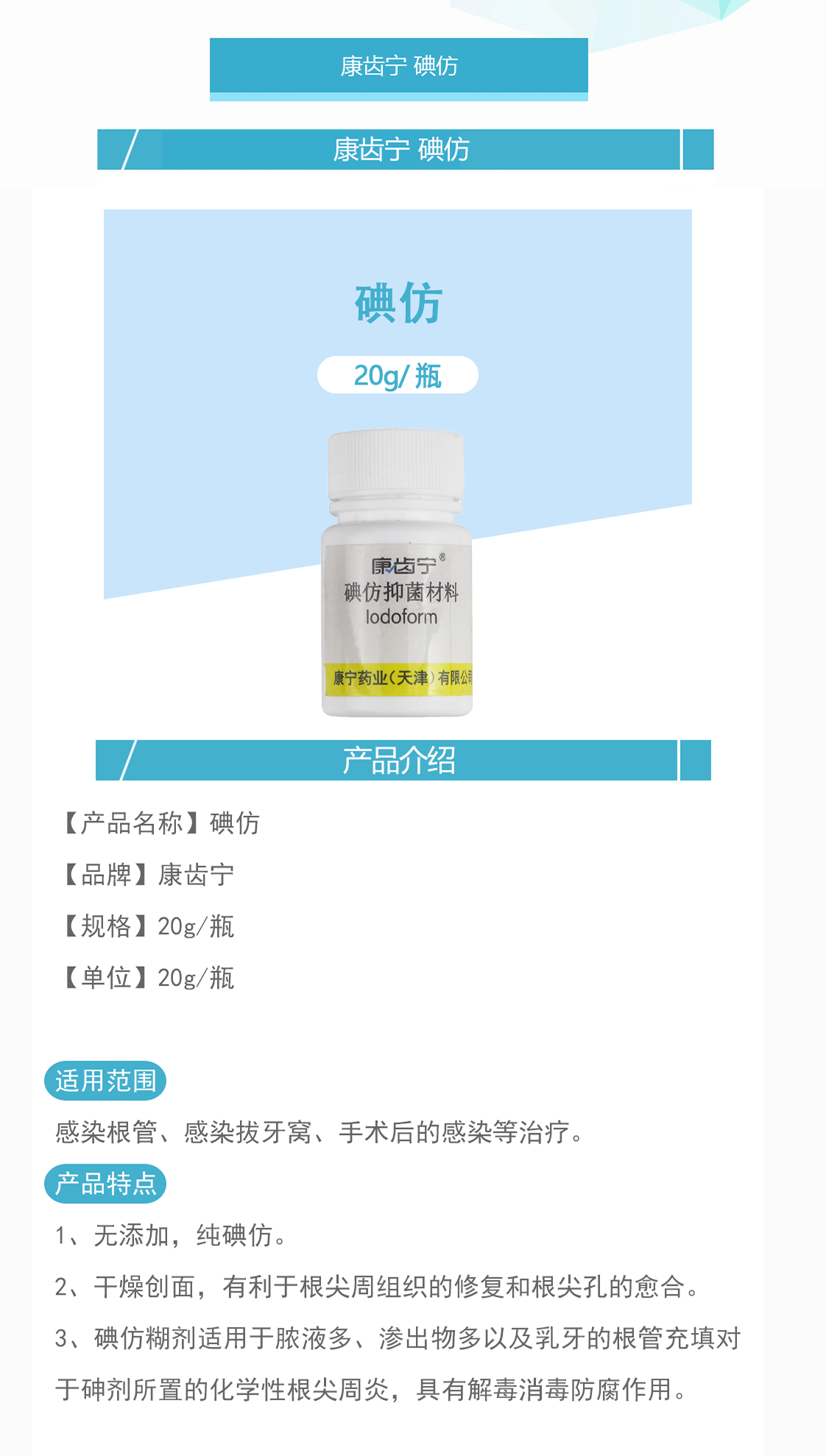 康齿宁 碘仿 20g/瓶