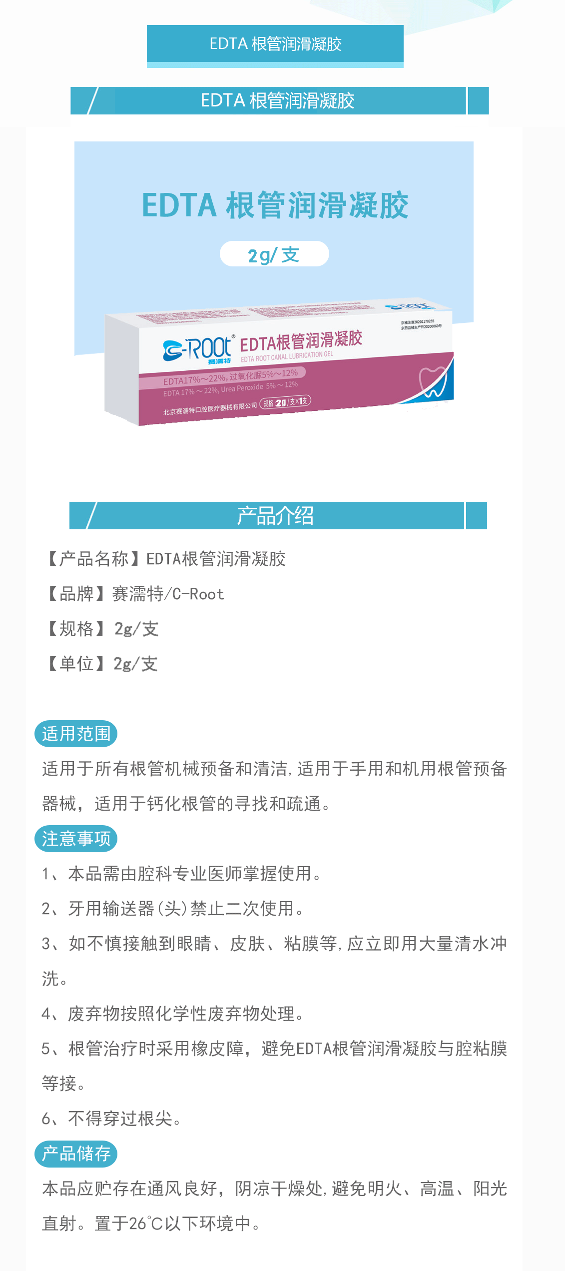 产品名称:EDTA根管润滑凝胶