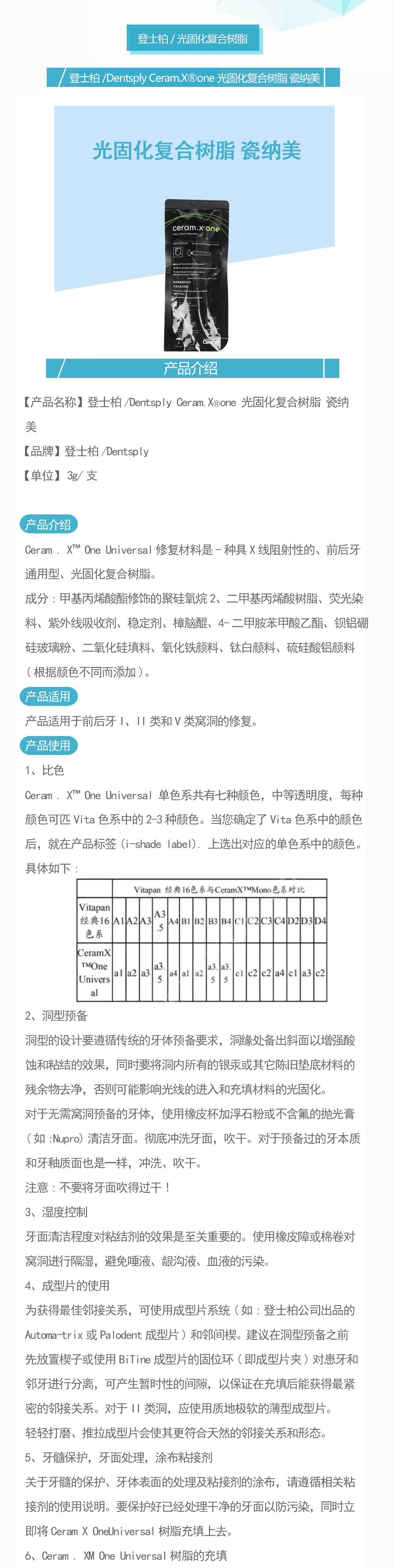 产品名称:Ceram.X®one 光固化复合树脂 瓷纳美