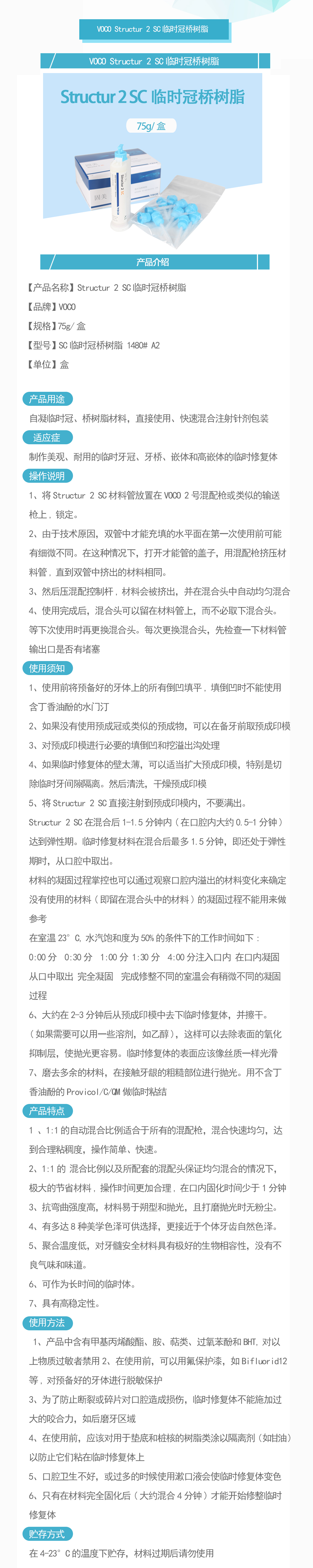 产品名称:Structur 2 SC临时冠桥树脂