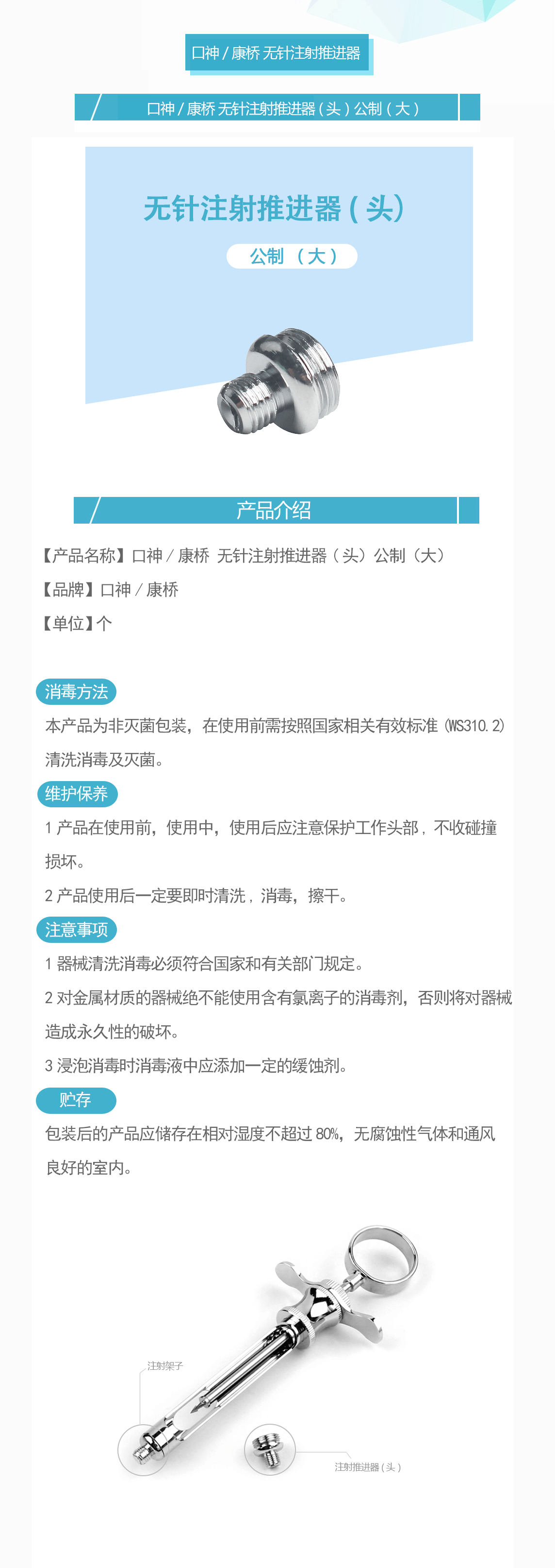 产品名称:无针注射推进器(头) 公制