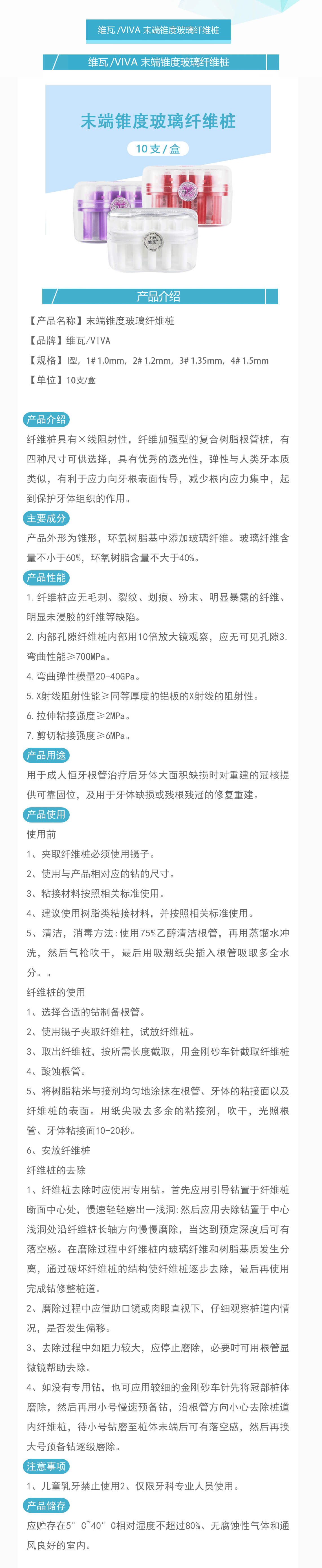 产品名称:末端锥度玻璃纤维桩 玻璃纤维桩 I型