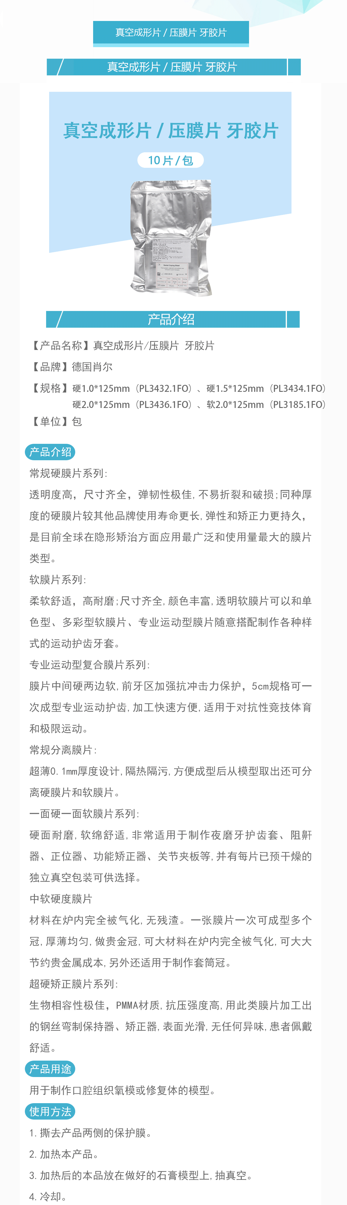 产品名称:真空成形片/压膜片 牙胶片