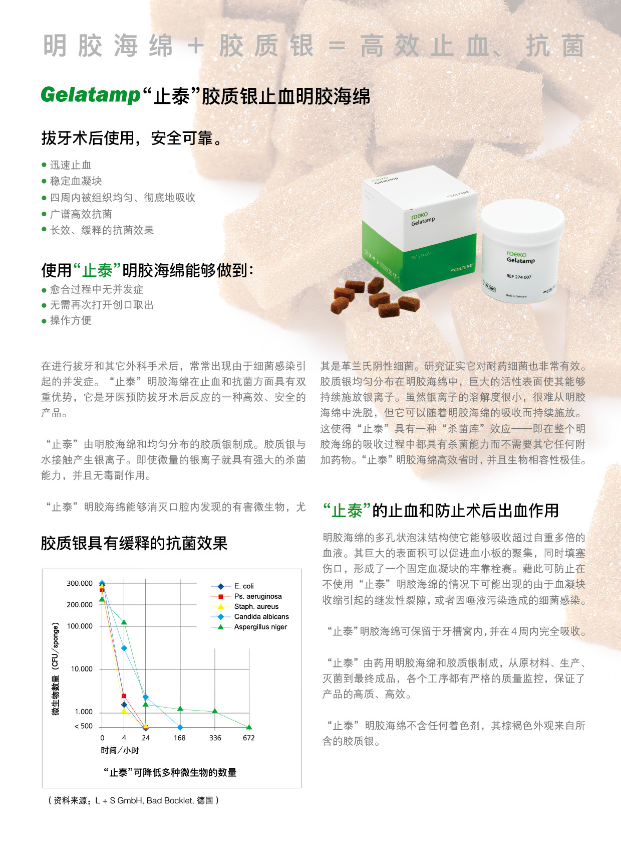 产品名称:Gelatamp“止泰”胶质银止血明胶海绵 14×7×7mm