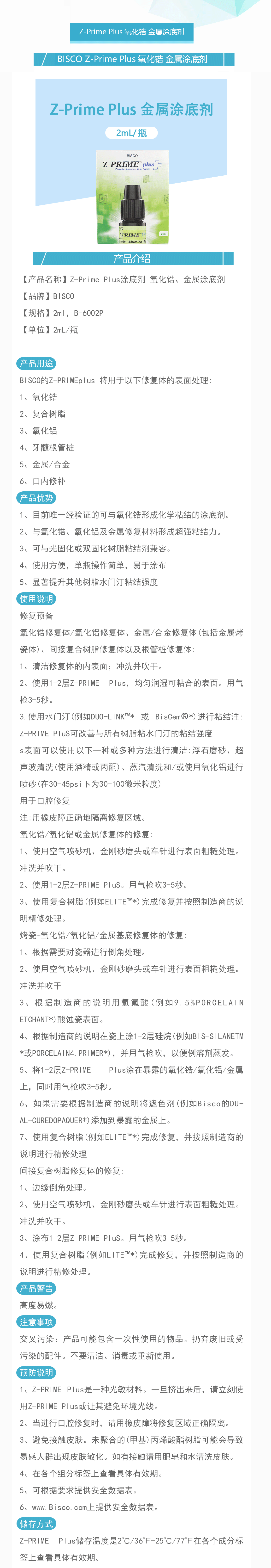 产品名称:Z-Prime Plus涂底剂 氧化锆、金属涂底剂 2ml,B-6002P