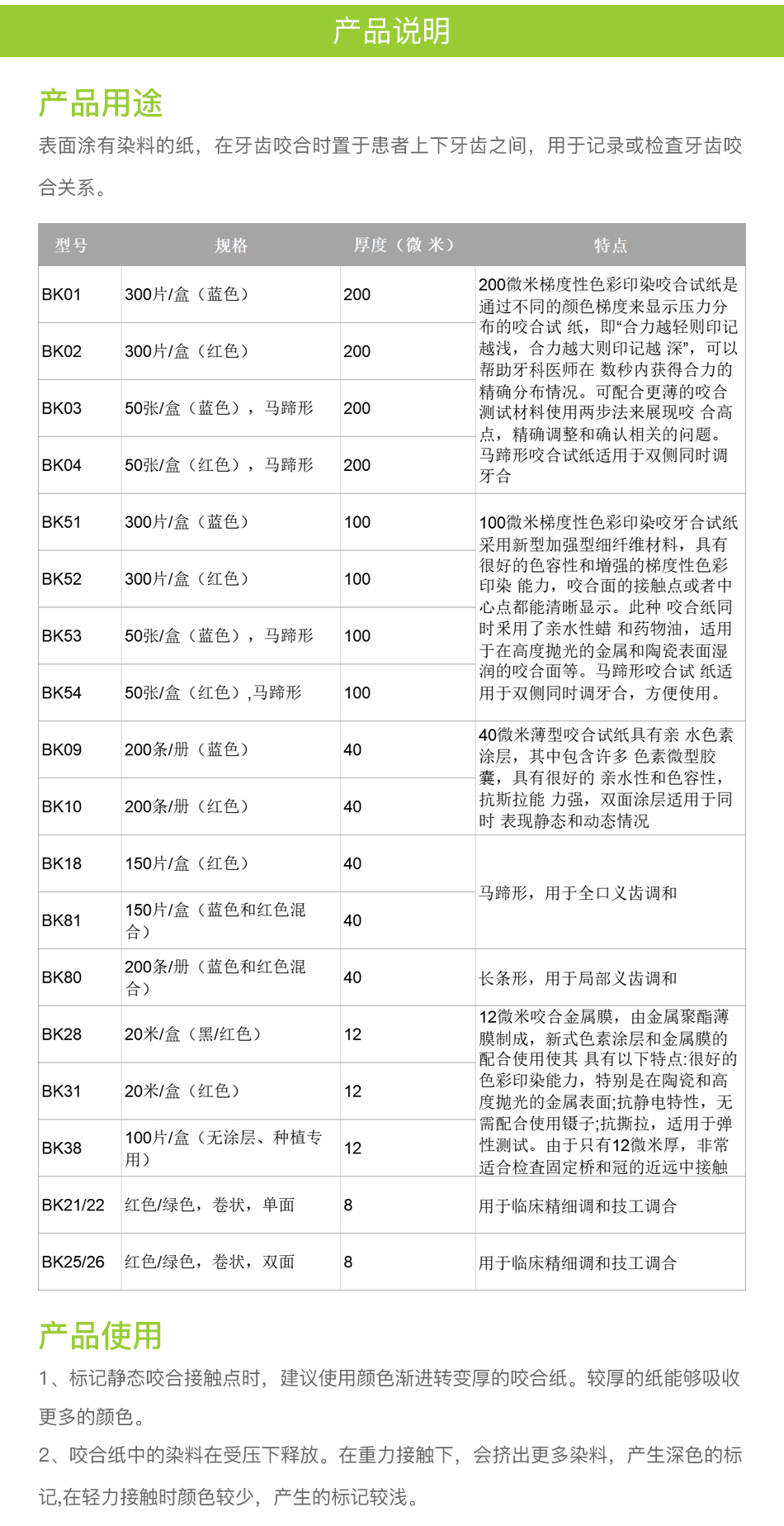 产品名称:咬合纸
