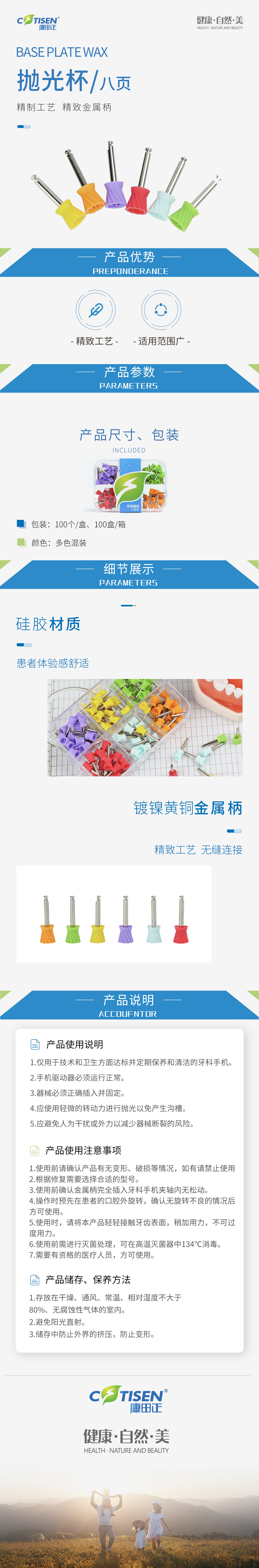 产品名称:八页牙科抛光杯 软杯,柄长14.5mm,硅胶头8mm