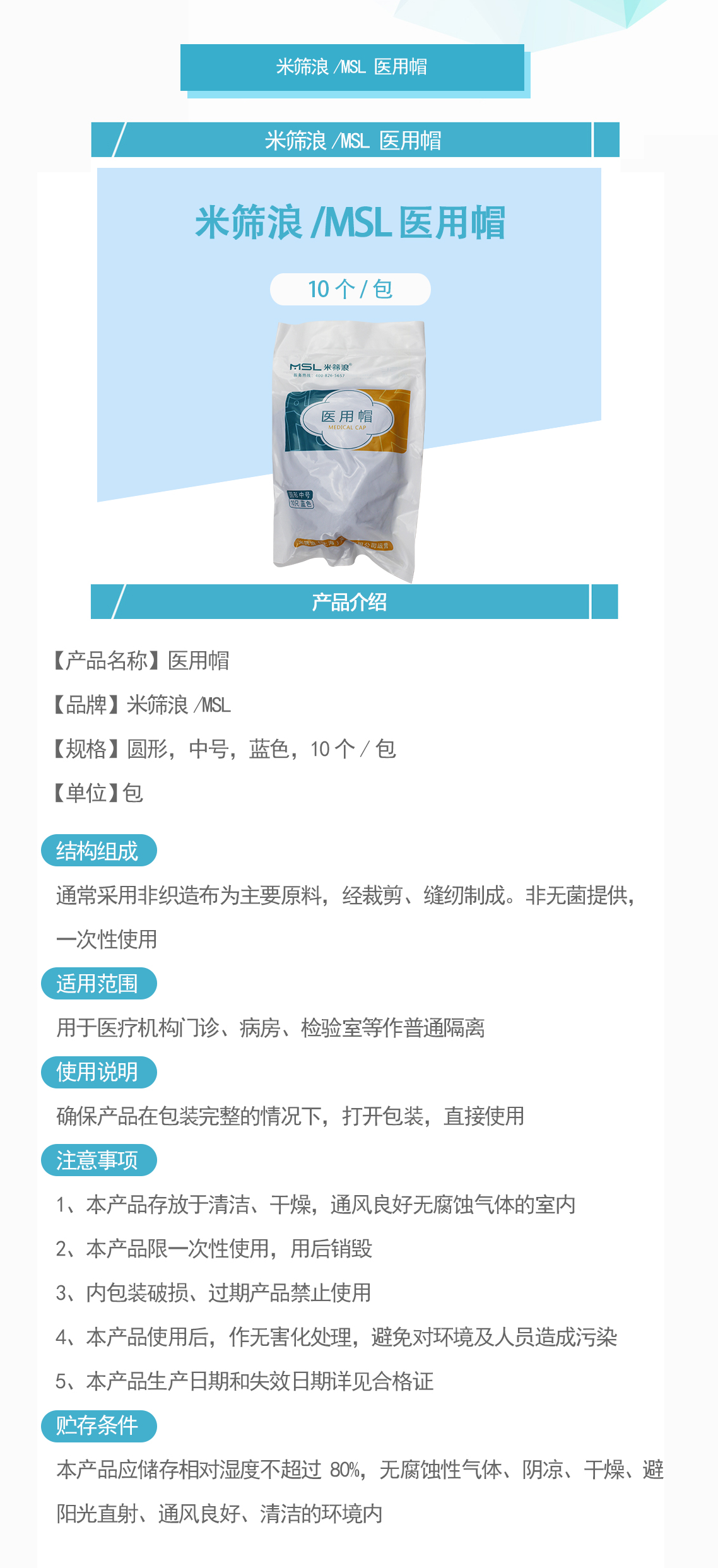 产品名称:医用帽 圆形,中号