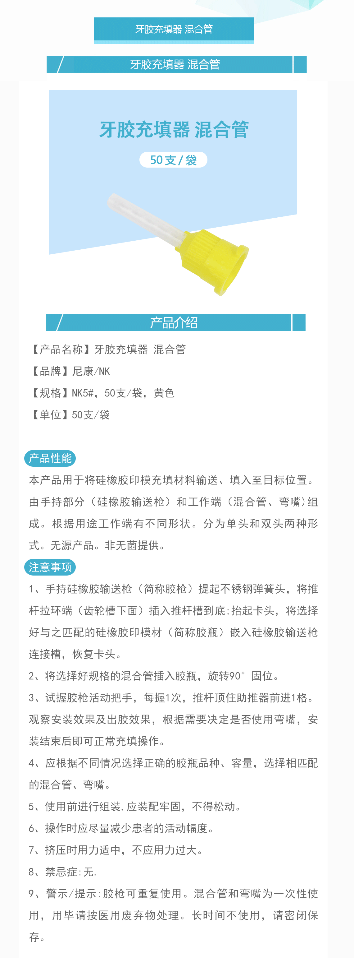 产品名称:牙胶充填器 混合管 NK5#