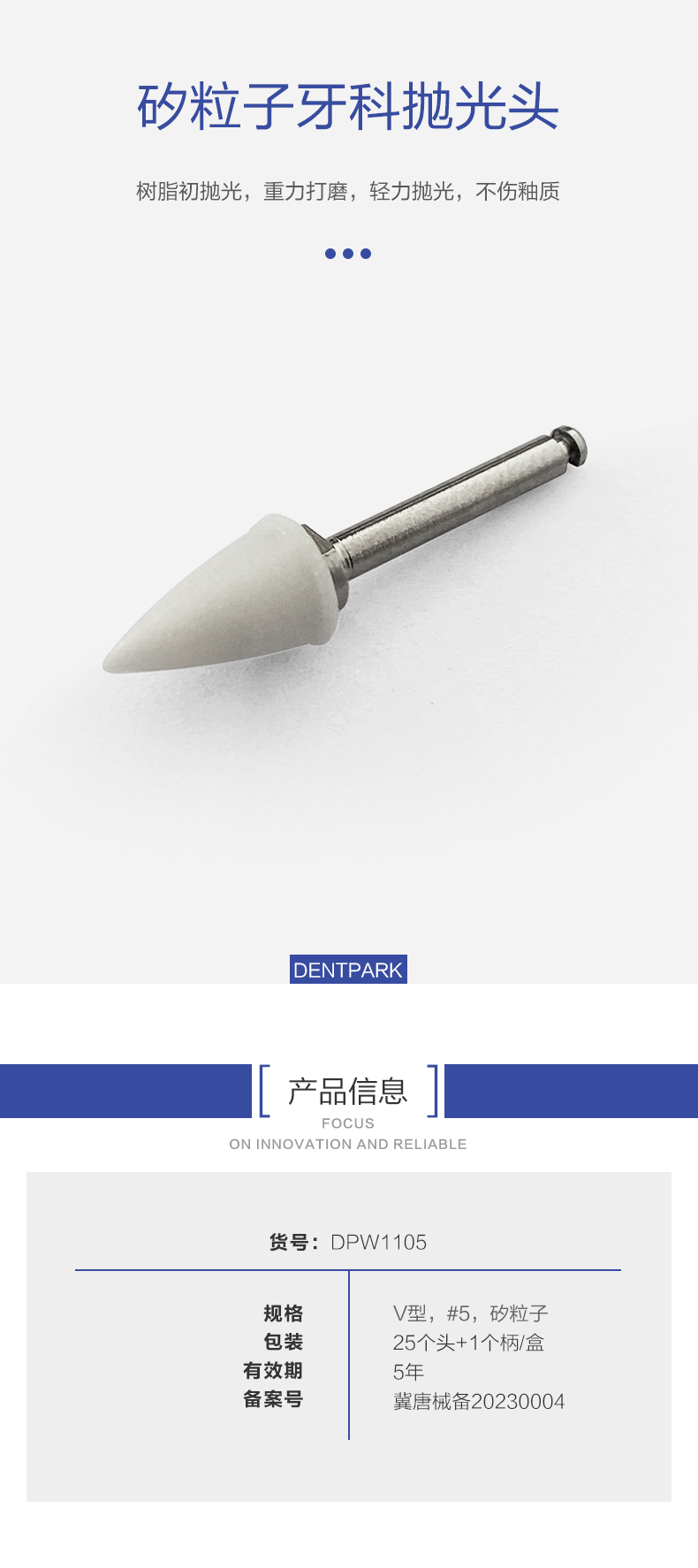 产品名称:矽粒子牙科抛光头 V型,#5,25矽粒子头+1不锈钢柄,DPW1105