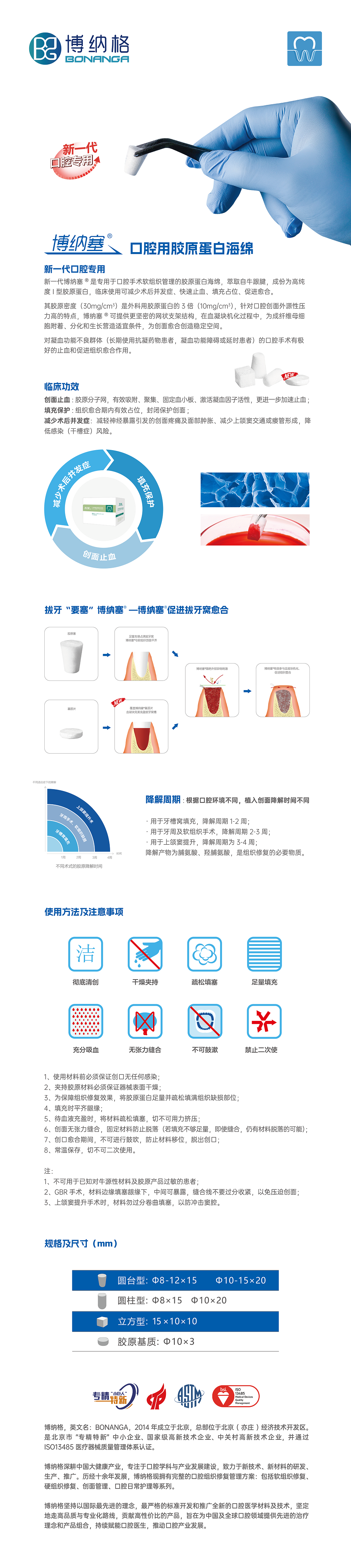 产品名称:医用胶原蛋白海绵 圆柱型