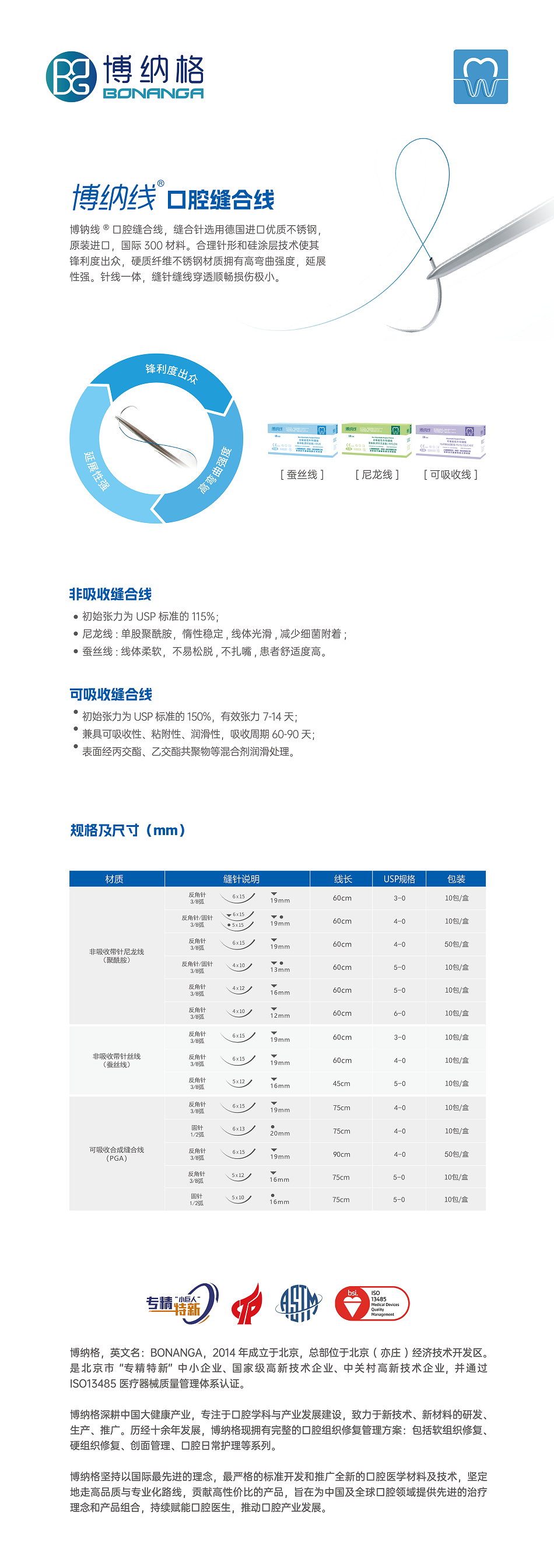 产品名称:带线缝合针 非吸收性外科缝线 聚酰胺(带针尼龙线)