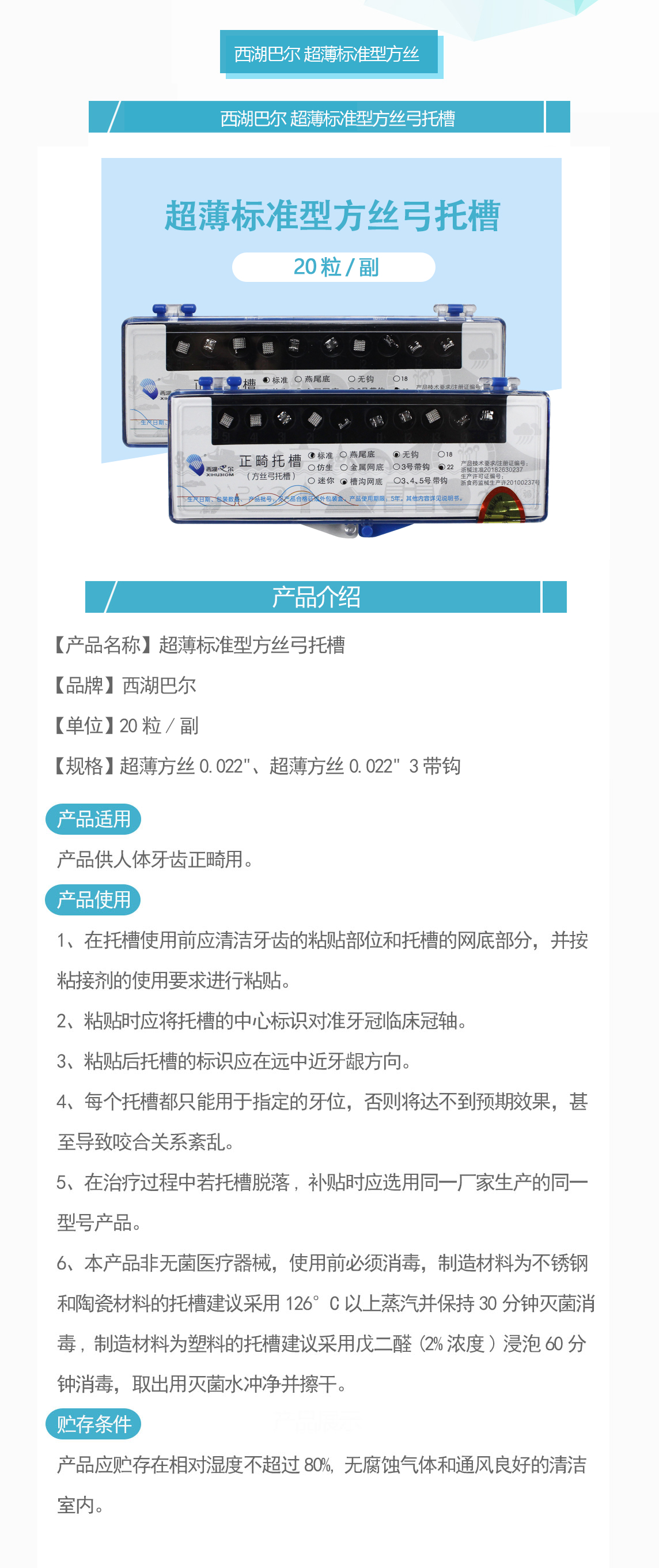 产品名称:方丝弓托槽 0.022