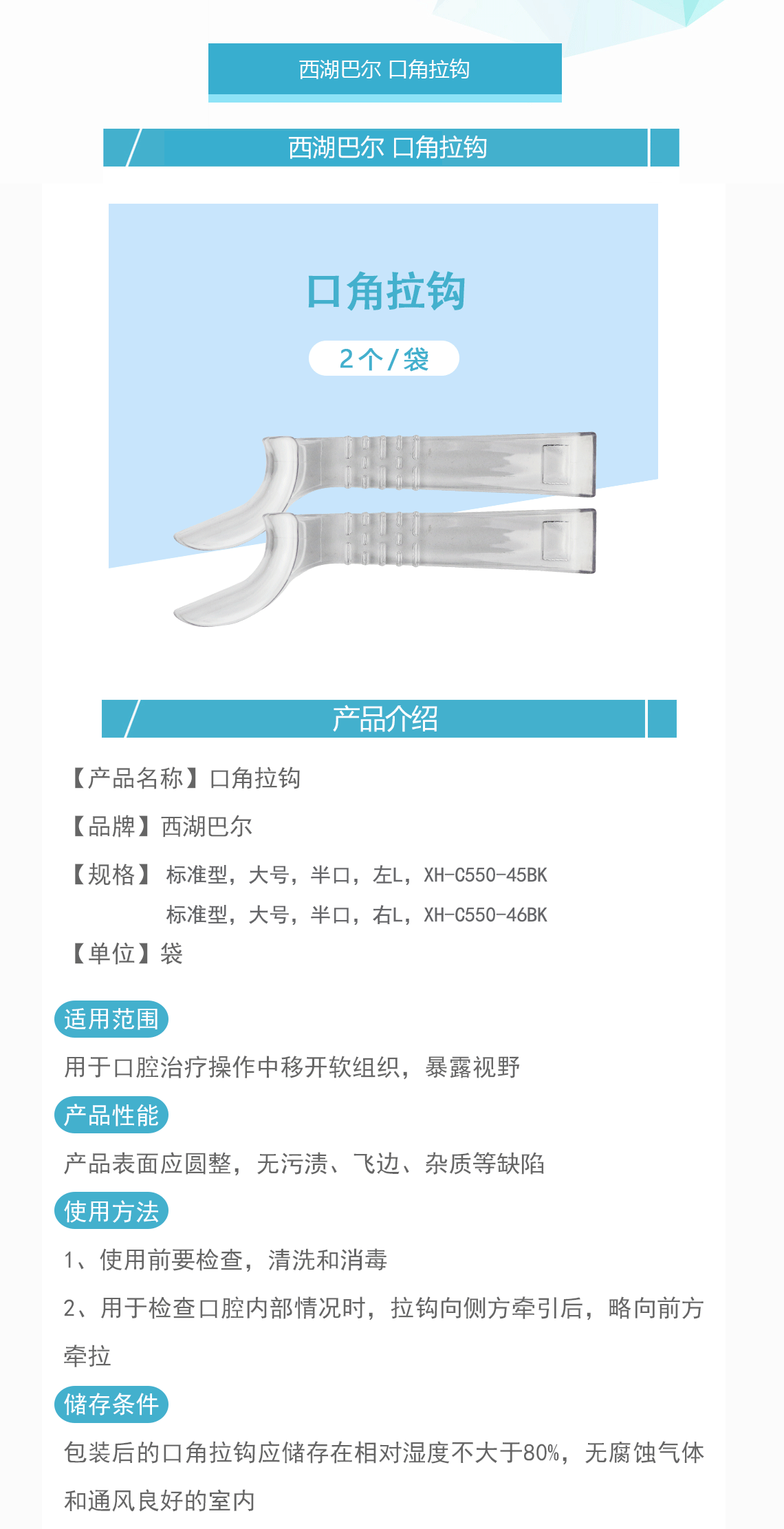西湖巴尔 口角拉钩 口唇拉钩 唇颊型,2个/袋