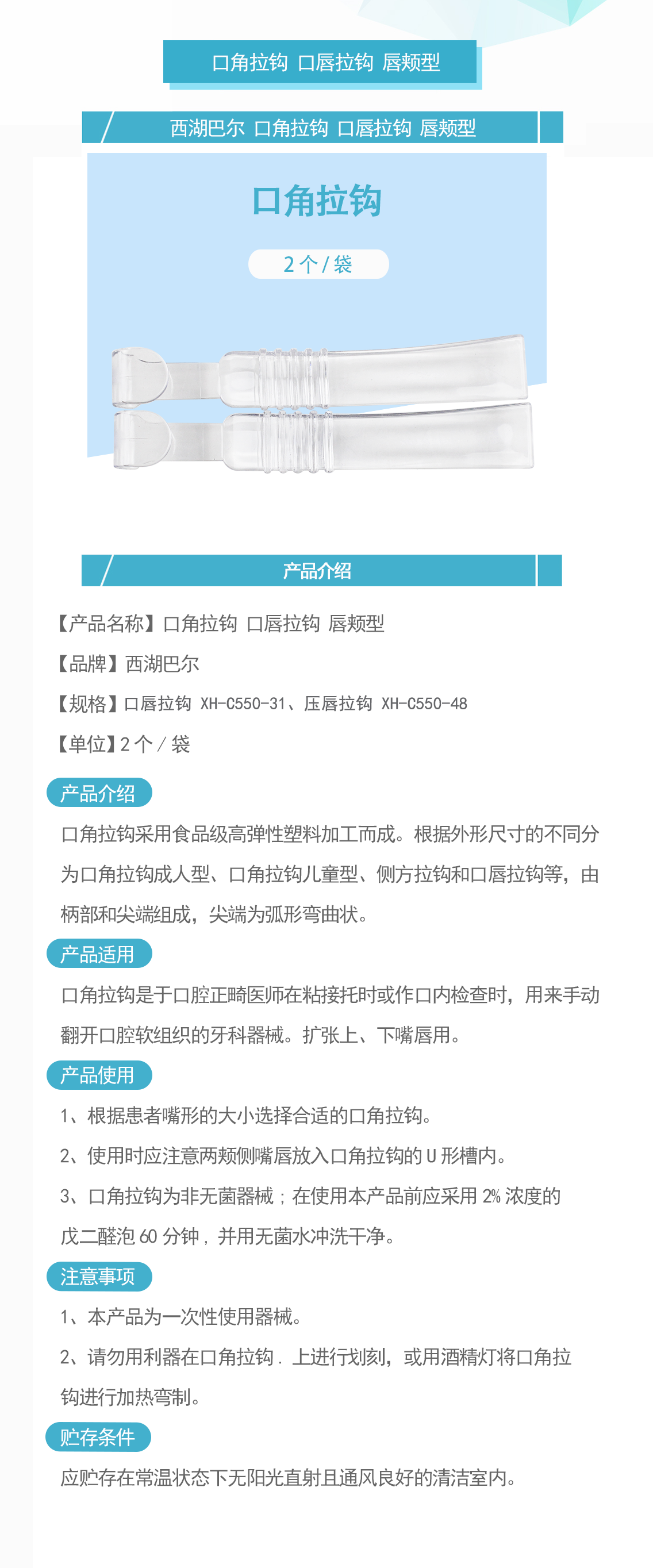 西湖巴尔 口角拉钩 口唇拉钩 唇颊型,2个/袋