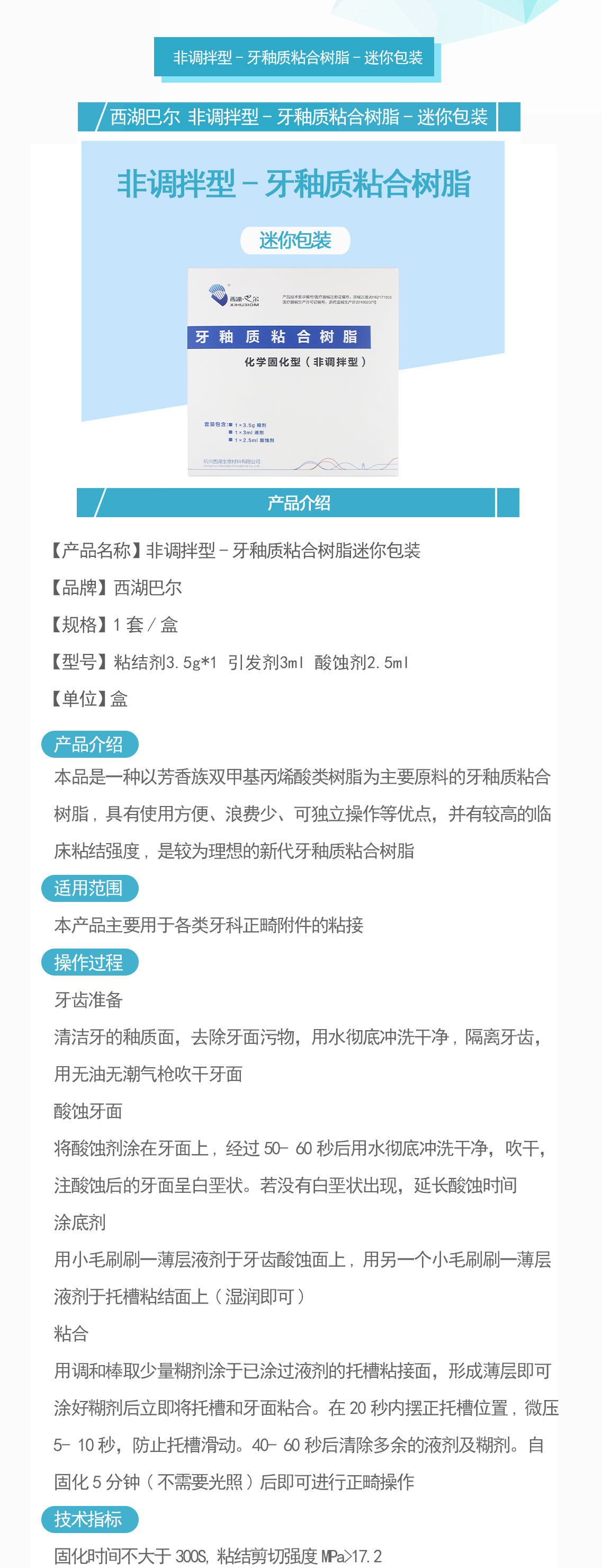 包装方式:粘接剂3.5g*1支 引发剂3mL 酸蚀剂2.5mL/套