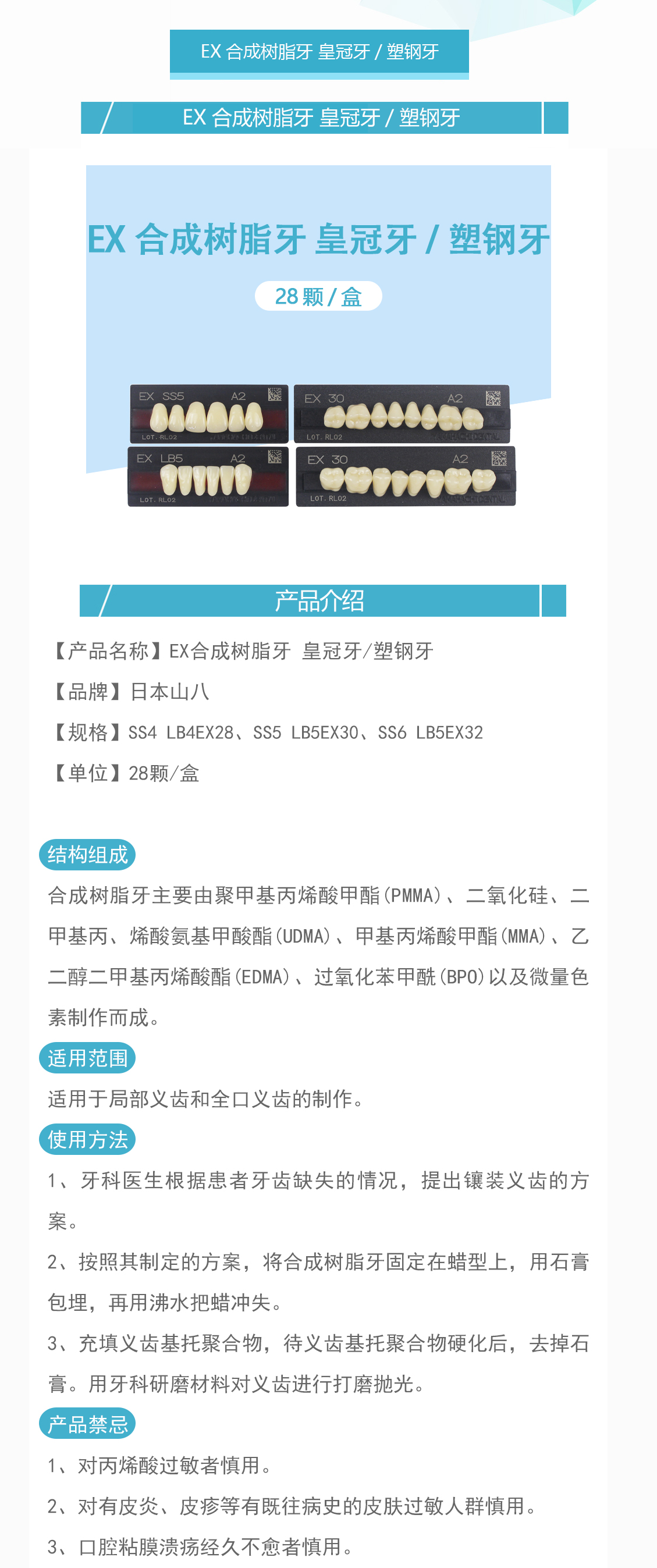 产品名称:EX合成树脂牙 皇冠牙/塑钢牙