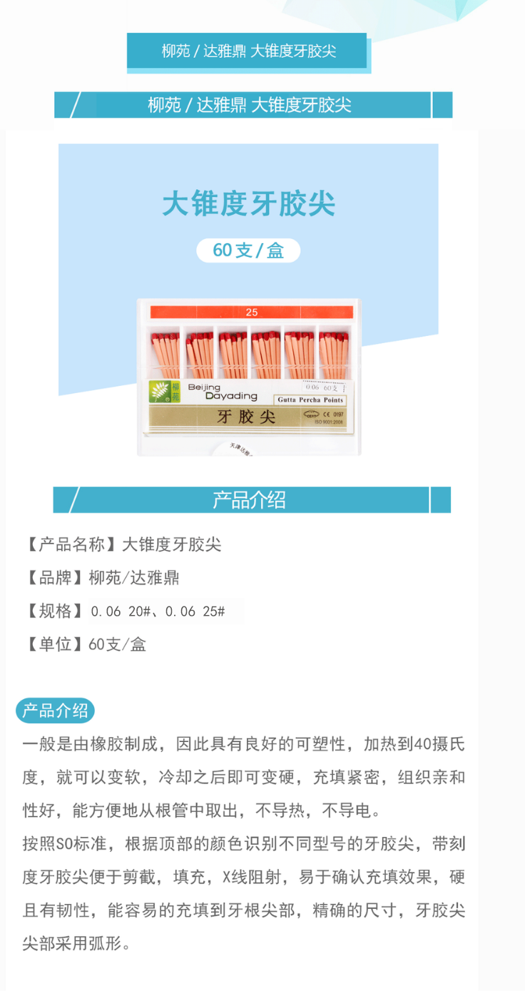 产品名称:柳苑/达雅鼎 大锥度牙胶尖 0.06