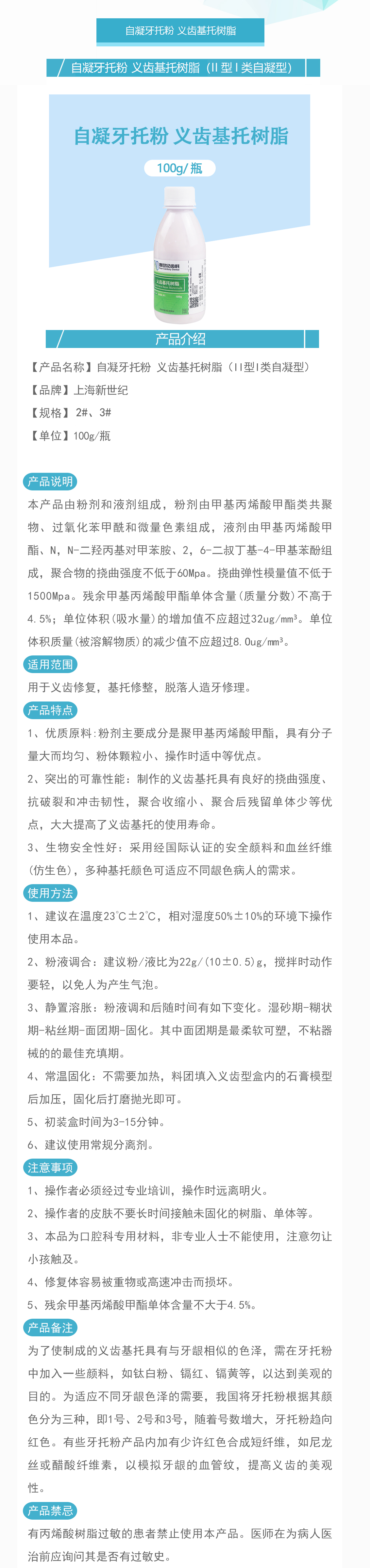 产品名称:自凝牙托粉 义齿基托树脂(II型I类自凝型)