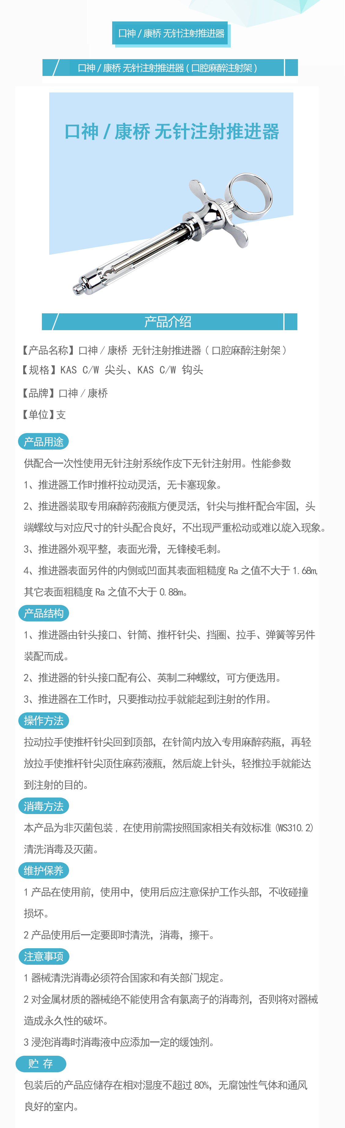 口神/康桥 口腔麻醉注射架 无针注射推进器 KAS C/W