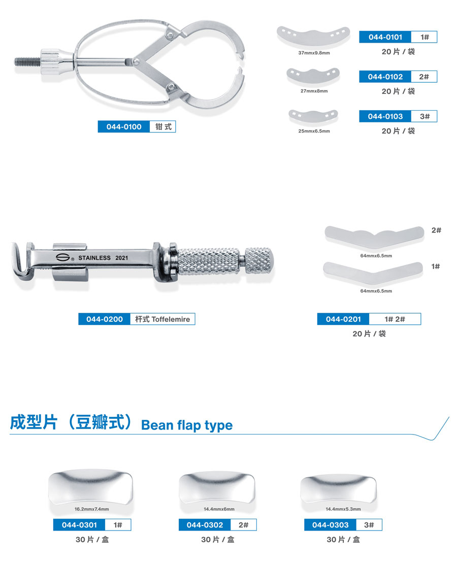 牙医公园/Dentpark 成形片 M5拉杆式圈形成形片 X型,1#、2#、3#各2支