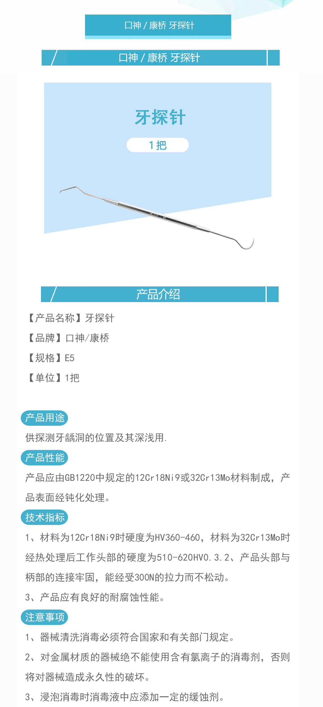 产品名称:牙探针-E5