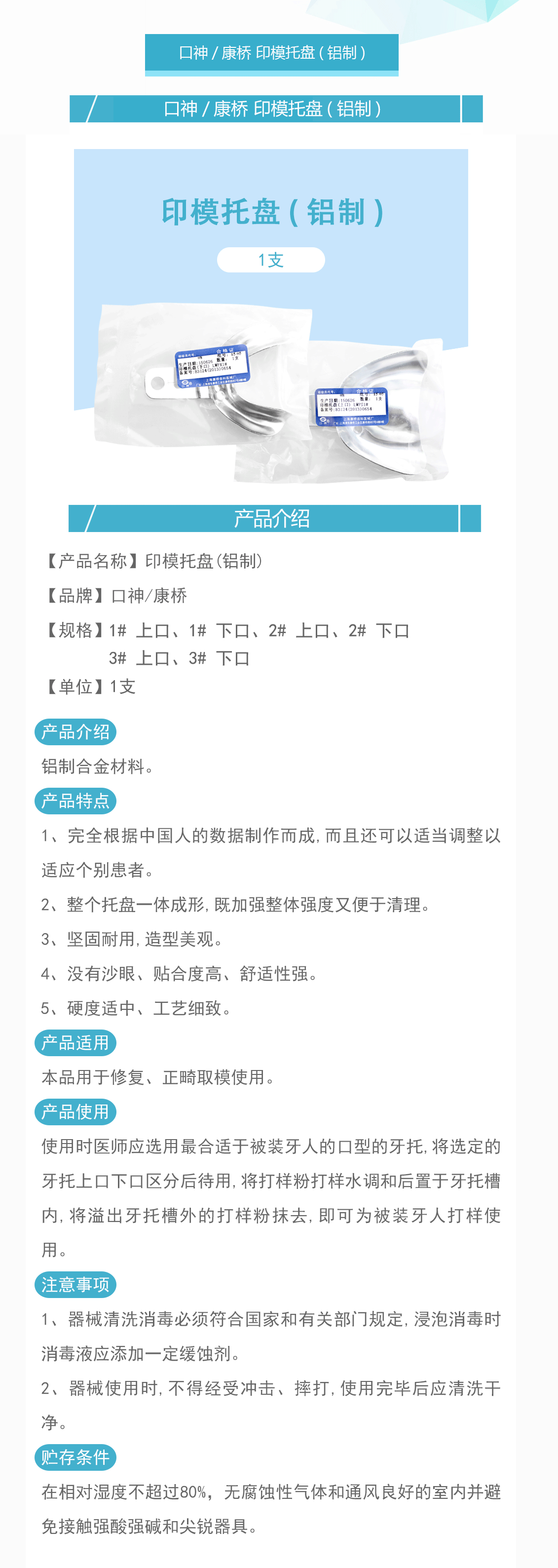 口神/康桥 印模托盘(铝制)-局部 无孔