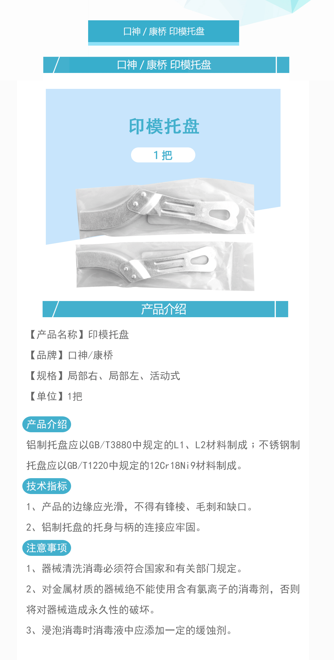 口神/康桥 印模托盘(铝制)-局部 无孔