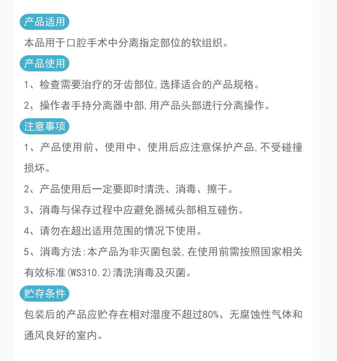 产品名称:腭裂分离器(腭粘骨膜) 牙用分离器 腭裂型