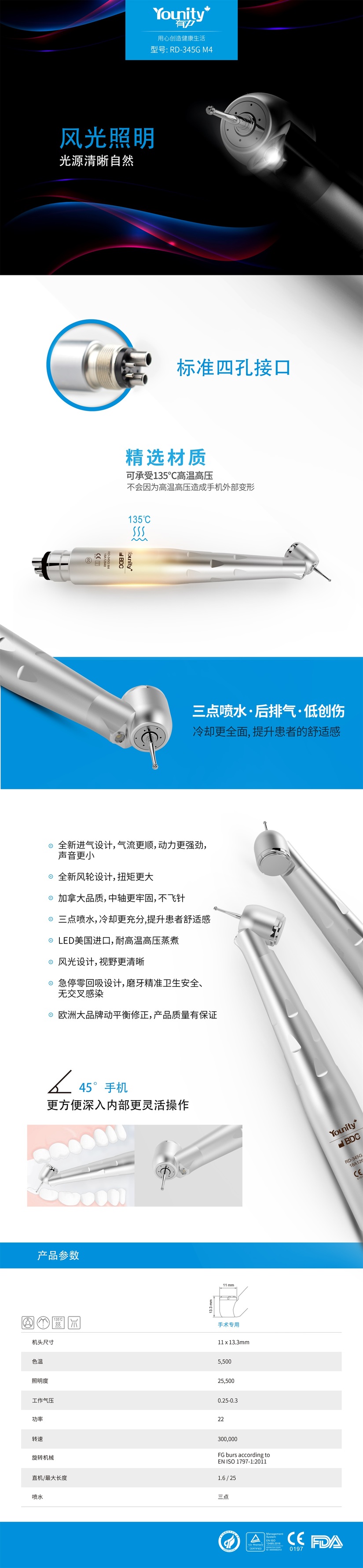 产品名称:高速风光手机 45°带光 标准四孔型号