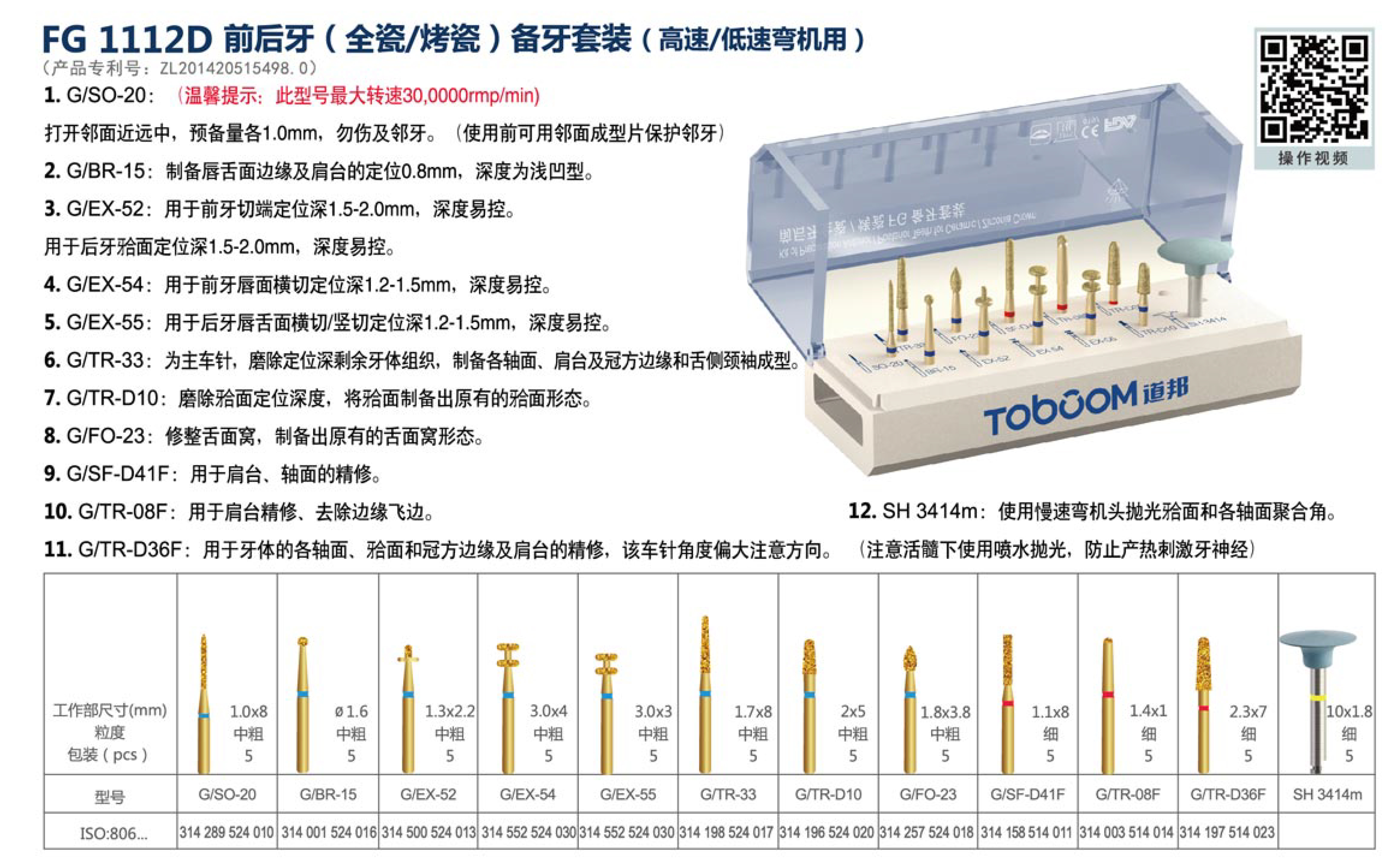 产品名称:前后牙(全瓷/烤瓷)备牙套装 FG1112D