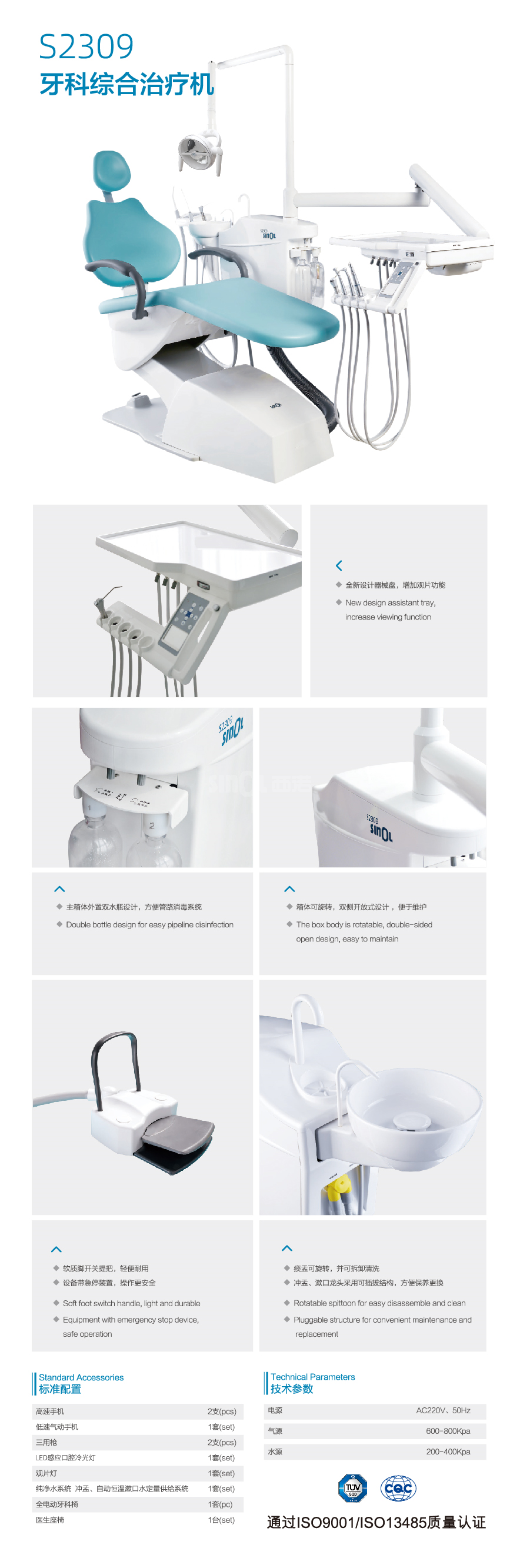 西诺/SINOL 西诺牙椅 牙科综合治疗机 S2309 (议价请联系客服)