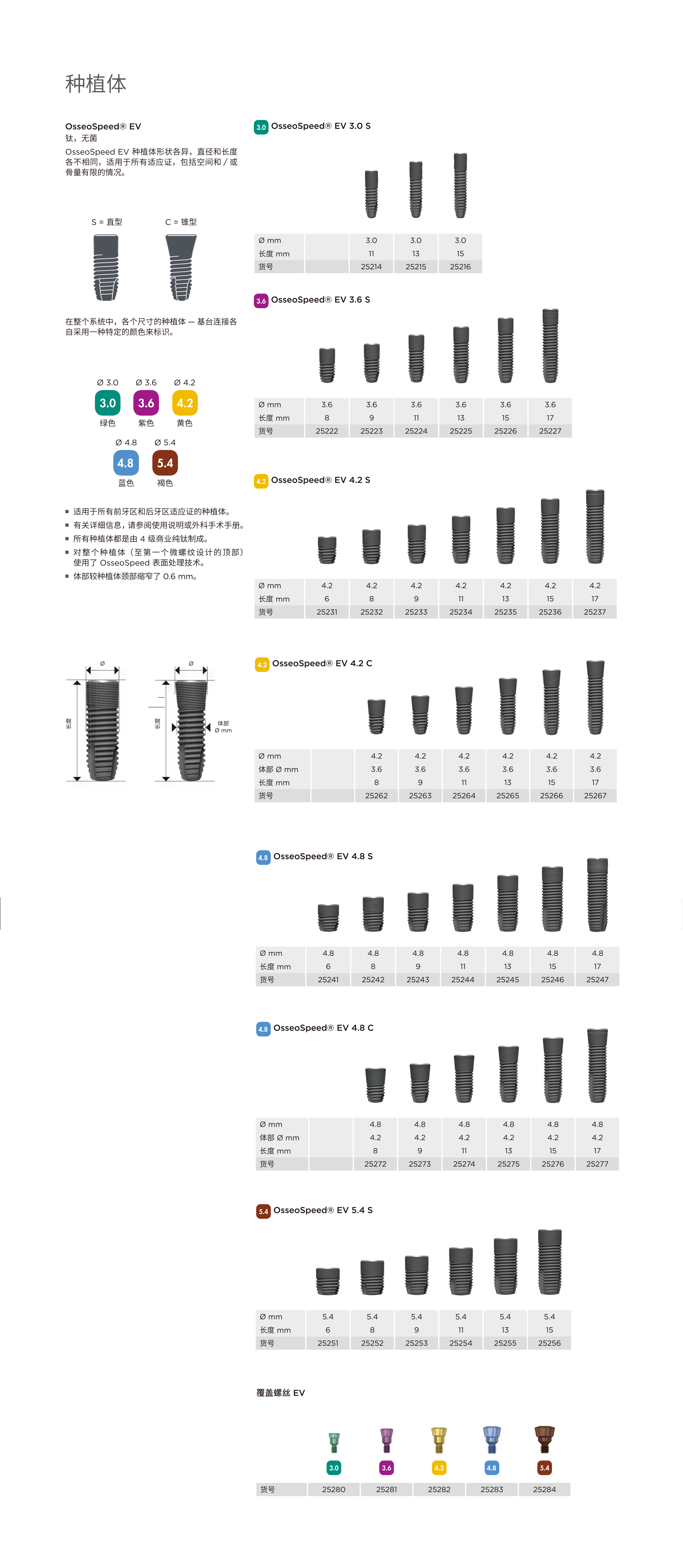 产品名称:Astra EV牙科种植体系统4.2S 直型 直径Φ4.2mm