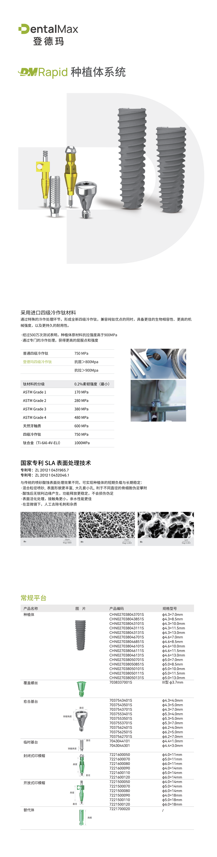产品名称:DMR φ4.6mm 常规平台 牙科种植体