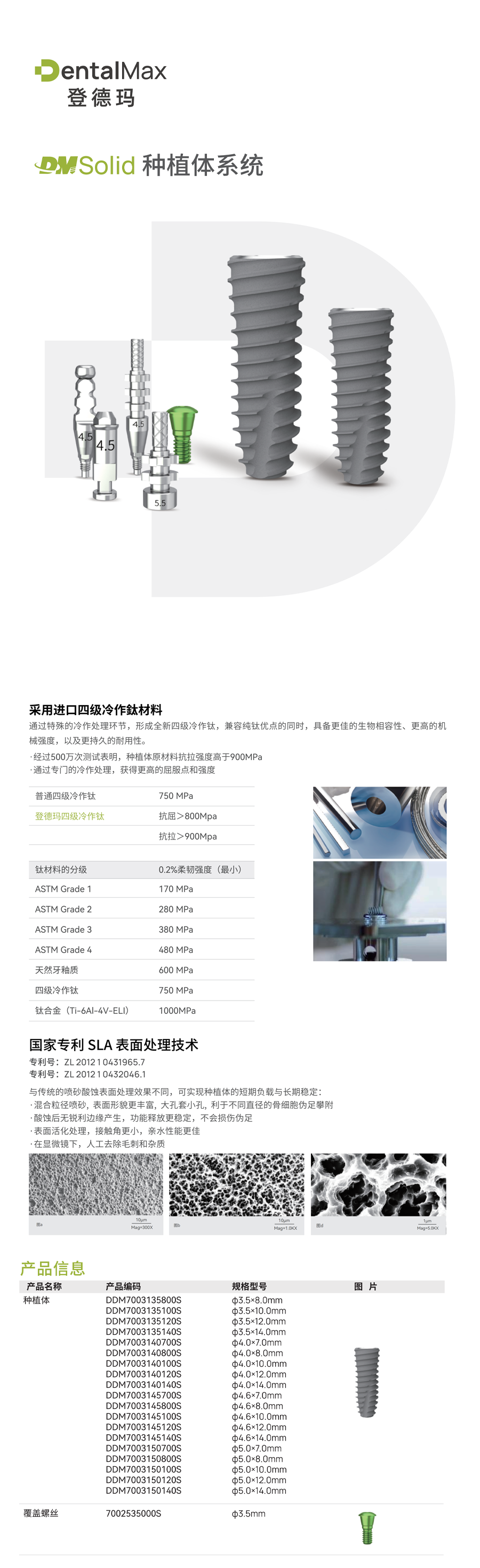 产品名称: φ5.0mm 牙科种植体